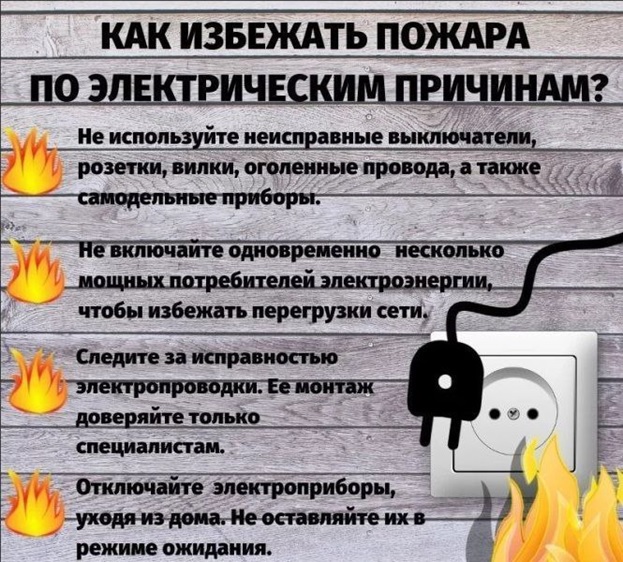 - Регулярно проверять состояние электроприборов и проводки.