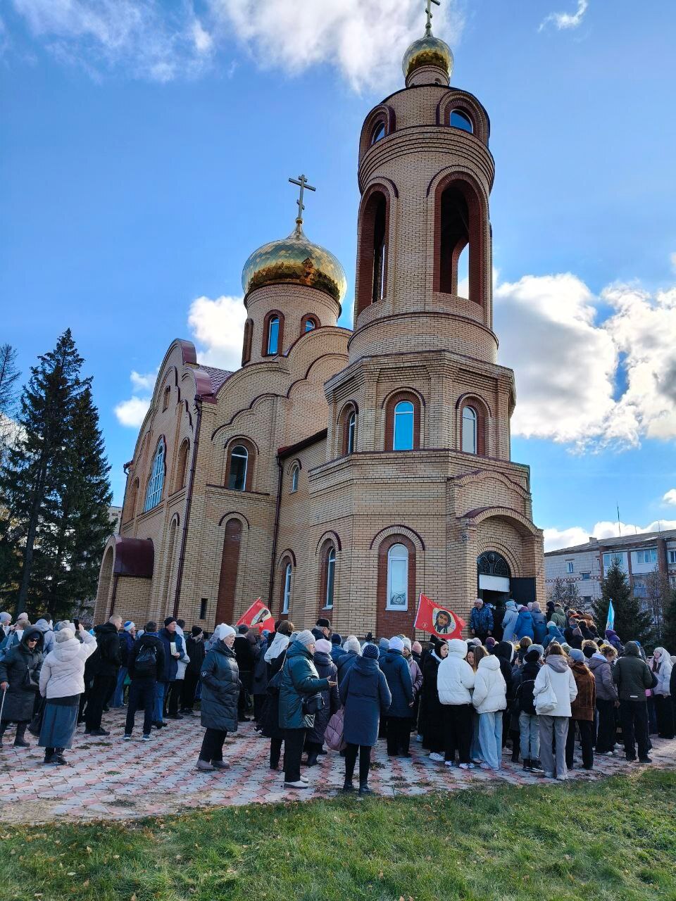 Сегодня в Покровском храме прошла праздничная Божественная литургия, а затем состоялся общегородской крестный ход к строящемуся кафедральному собору.